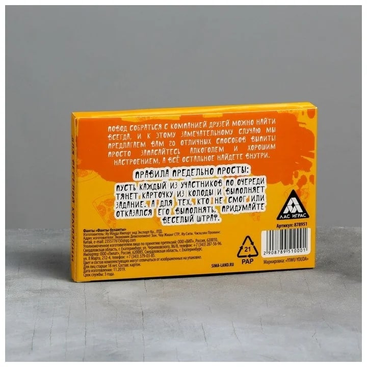 Купить игра для компании "фанты буханты" 20 карт от 100 руб. с доставкой до пункта выдачи в Правдинске. Интернет магазин ДекаМаркет. Оплата при получении.